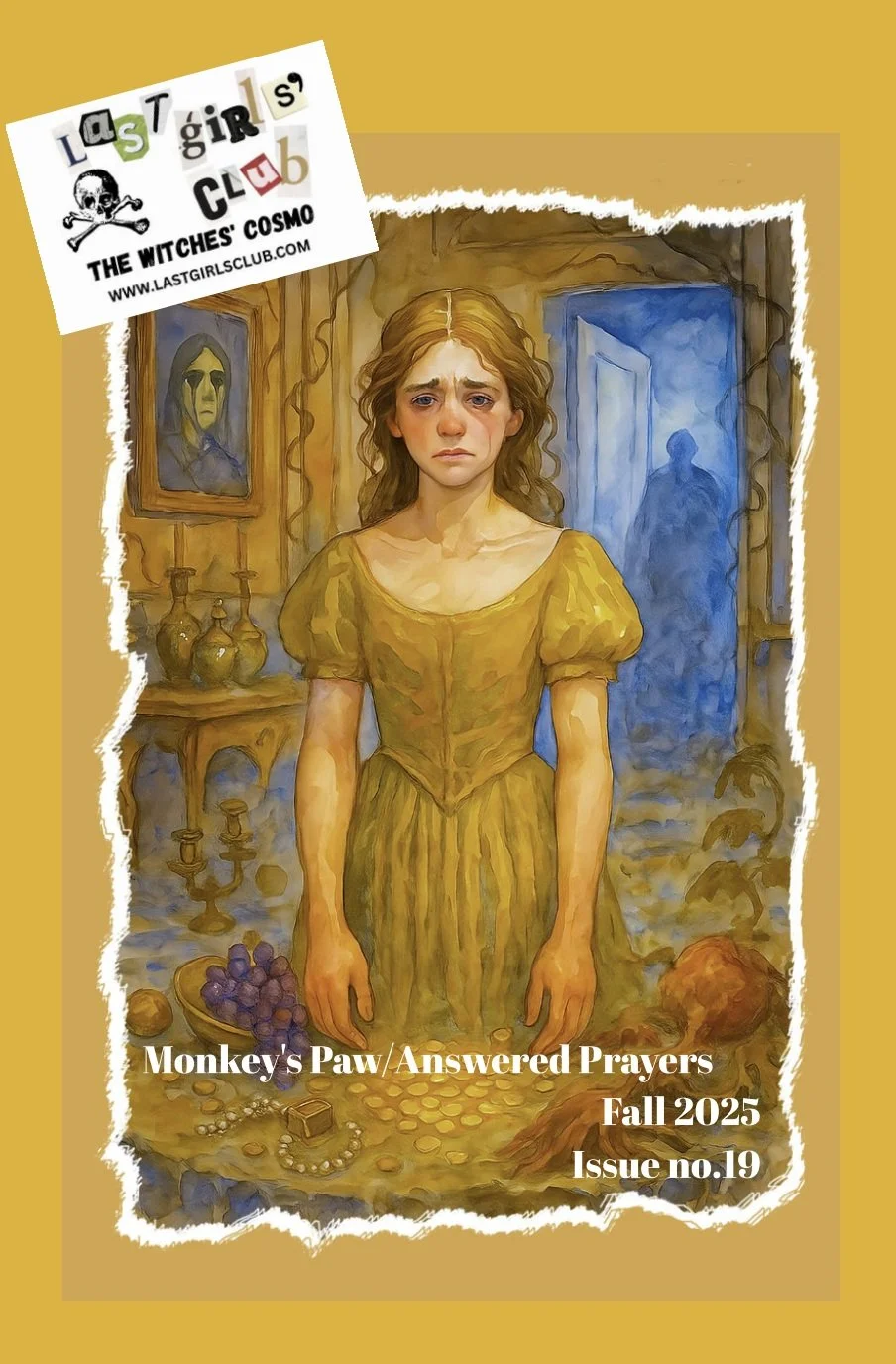 Welcome back dear faithful followers. This season Last Girls Club explores Thoughts & Prayers, in all their glory and hypocrisy. From the food of godless angels, to the thoughtless phrase of dismissive absolution; we plunge our hands up to the elbows in the ether to yank free new fiction squalling and kicking into the universe. Cities of the Dead takes you to a tiny pet cemetery off the coast of California. Our columnist shares her journey of an early hysterectomy for crippling pain. Our editor in chief reviews from the perspective of her own recent widowhood Alex Garland's latest film MEN, a lush British folk horror about a haunted widow. Our moon priestess reveals your auspicious days in the coming season for you to light your candles accordingly. See you in the Winter. And as always, may the shadows embrace you and the monsters fear you more.